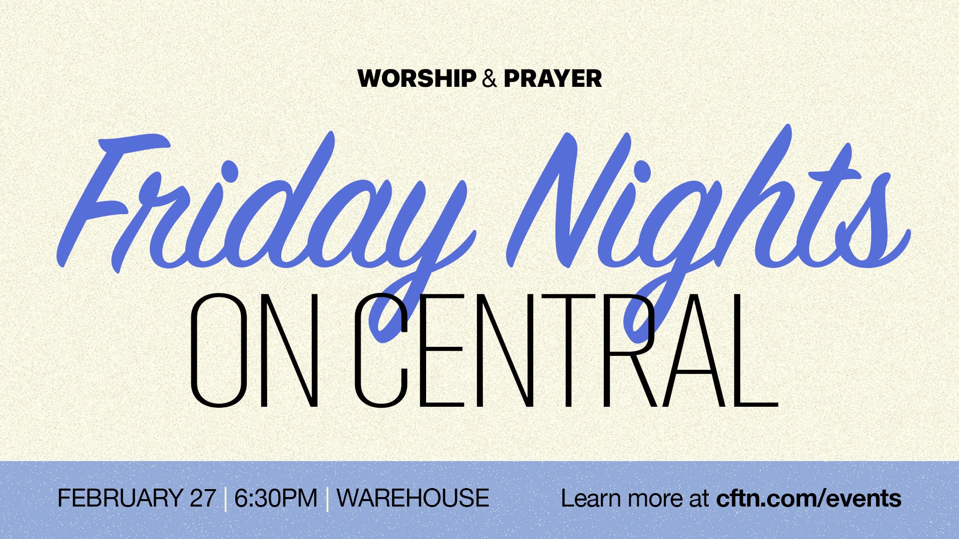 Friday Nights On Central is an hour and a half filled with Worship and Prayer.  You will want to be a part of this powerful and exciting time as we lean into the Lord’s heart and pray for our city, state and nation as well as the Seven Mountains of Culture.